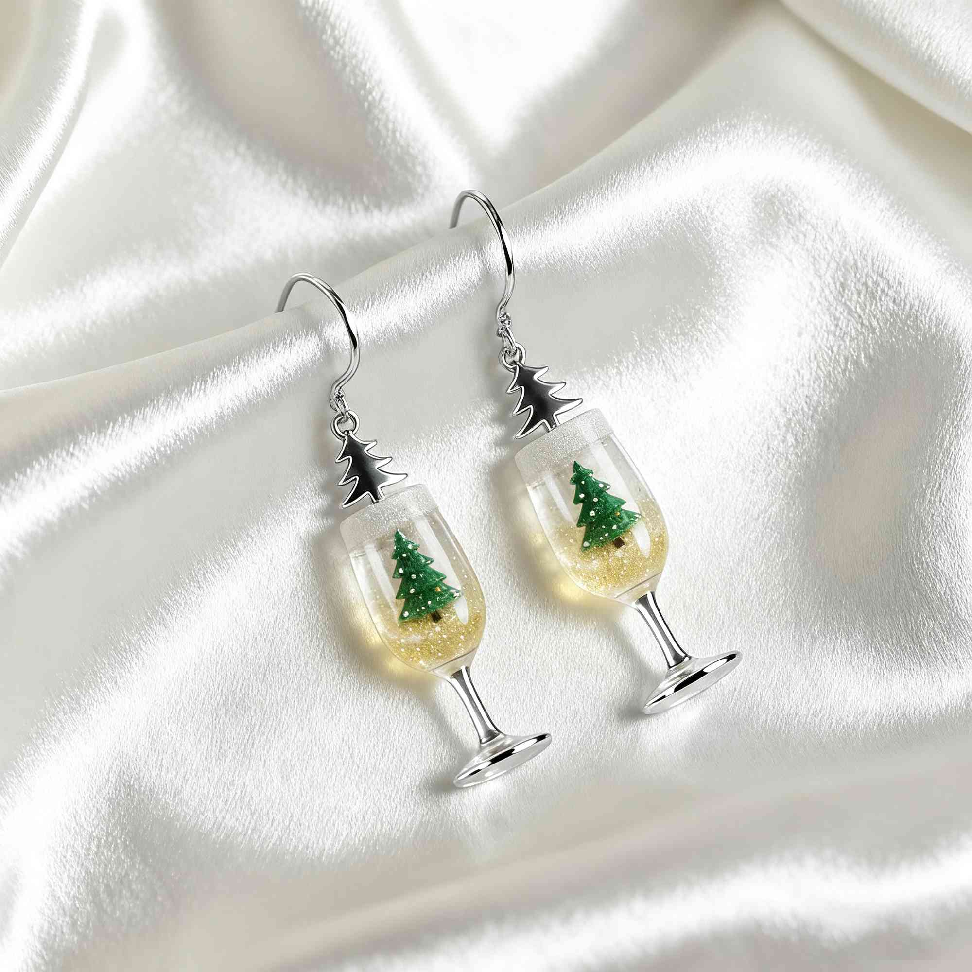 Sip into the festive spirit with these unique earrings! Each piece features a elegant champagne flute filled with golden beer, where a tiny Christmas tree magically floats. Perfect for holiday parties & gift exchanges! ✨