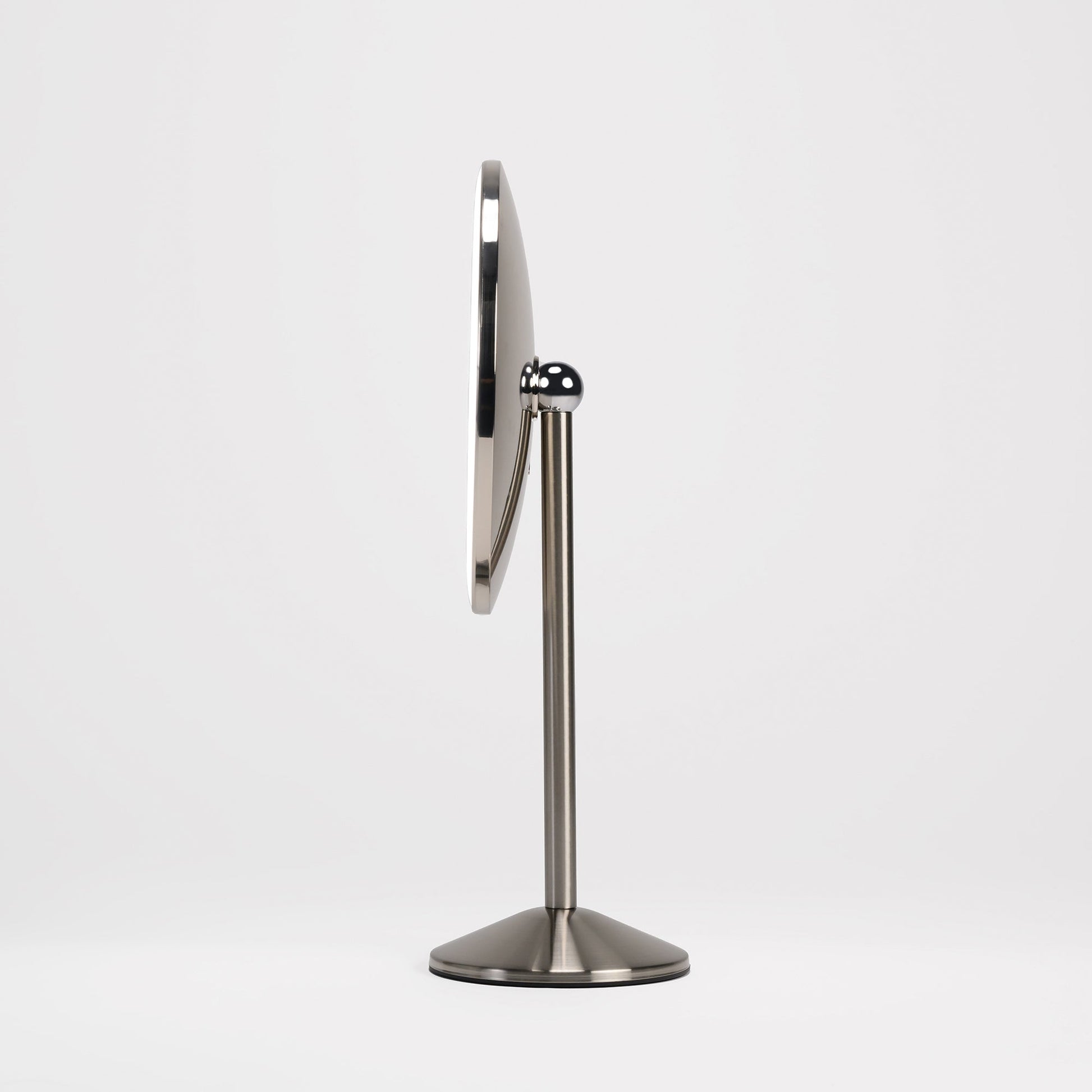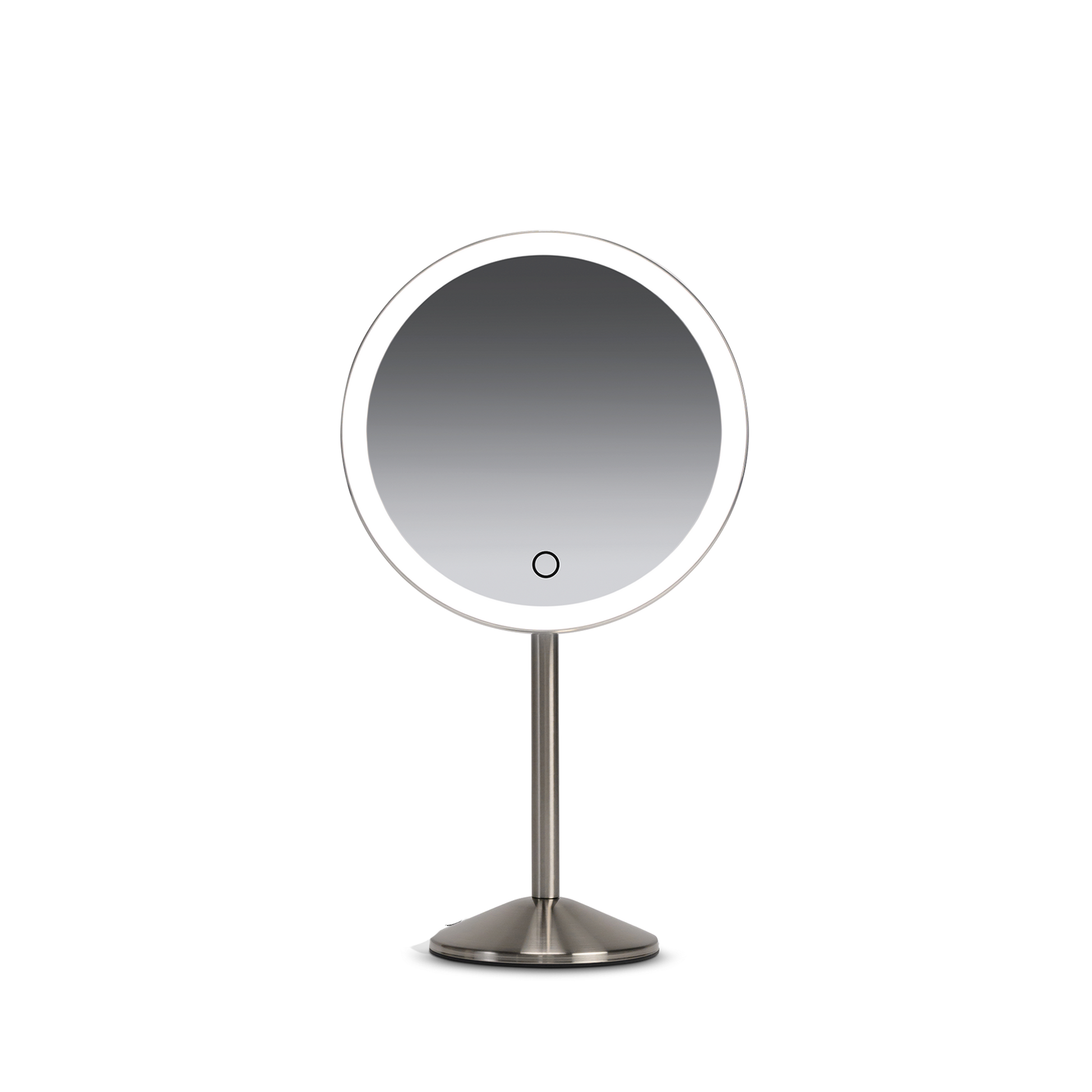 The rechargeable round table mirror mimics true daylight for accurate color rendition and twice the brightness of typical mirrors. Its rechargeable battery lasts 6-8 hours, and its magnetic design allows for easy removal from the base for handheld use. Fully dimmable and compatible with an optional suction cup, it's perfect for jetsetters needing reliable makeup lighting on the go.